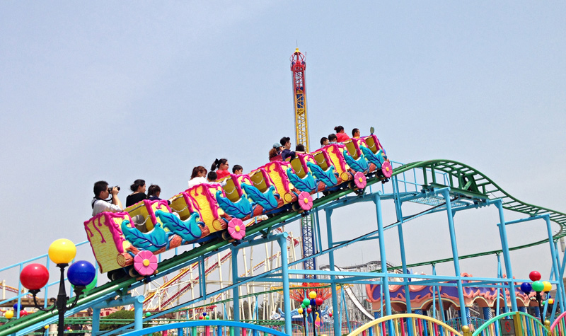 仿佛一团蓝色的火焰,以28米/秒的加速度,在轨道中流畅飞翔,90度俯冲,四环空中S形转弯、螺旋翻滚、心形线翻滚一气呵成,在刺激与尖叫声中体验失重漂浮的神奇魅力。