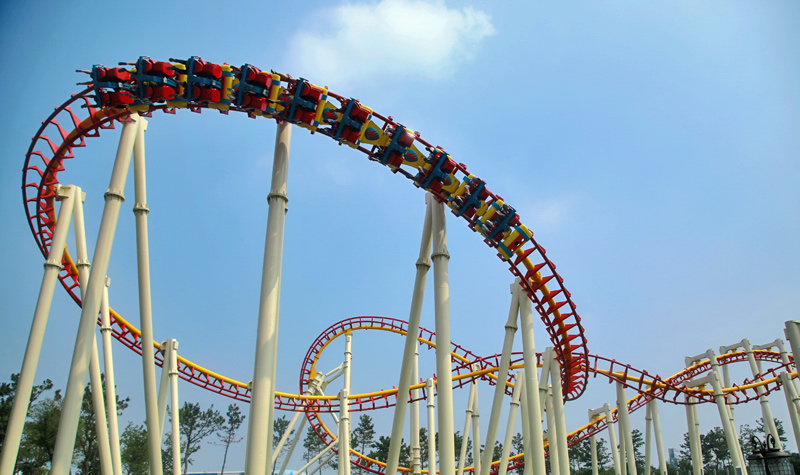 仿佛一团蓝色的火焰,以28米/秒的加速度,在轨道中流畅飞翔,90度俯冲,四环空中S形转弯、螺旋翻滚、心形线翻滚一气呵成,在刺激与尖叫声中体验失重漂浮的神奇魅力。