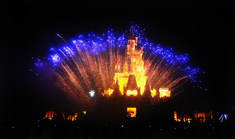 如果是在周末你去到欧乐堡梦幻世界游玩度假,晚上你会看到精彩的烟火表演。